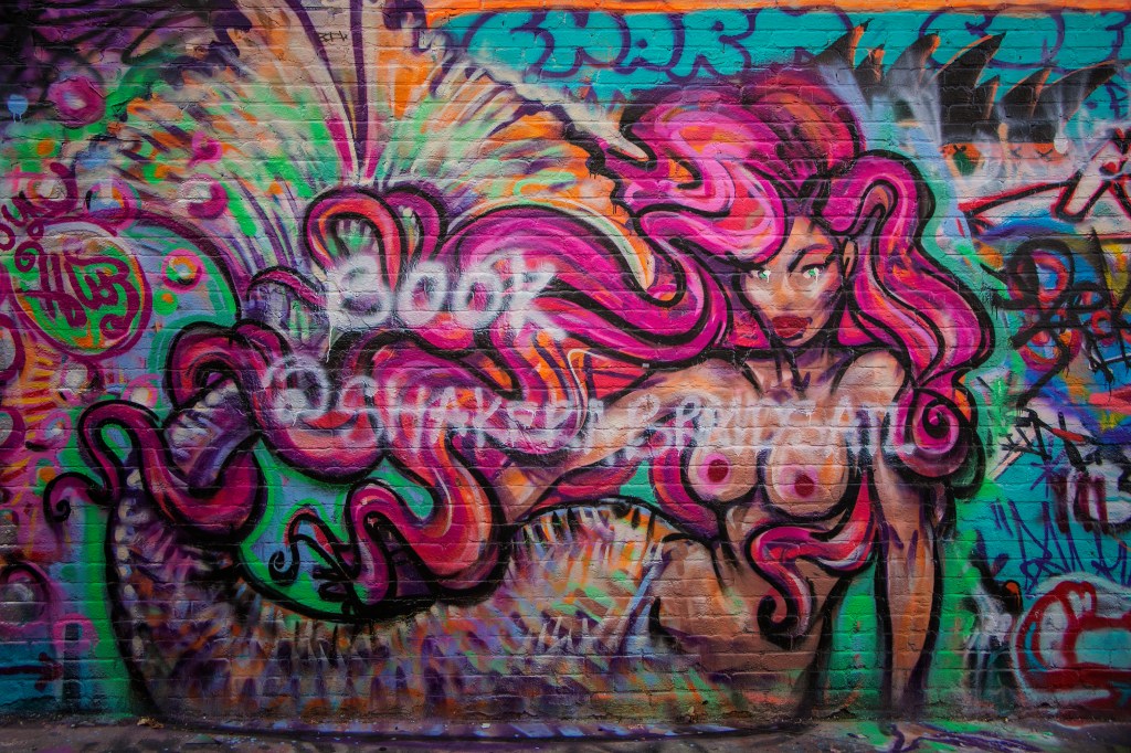 Located behind the intersection of Howard Street and North Avenue in Baltimore City is a secluded series of connecting alleys that is a sight to behold. Countless young men and women have obviously committed a great deal of time in creating this modern-day work of art. In a pure artistic sense, it can be considered a twentieth century rendition to the Sistine Chapel – without the pope. 😊 This is obviously a slight exaggeration, but it is indeed a beautiful reflection on the lives of our young people of the city.